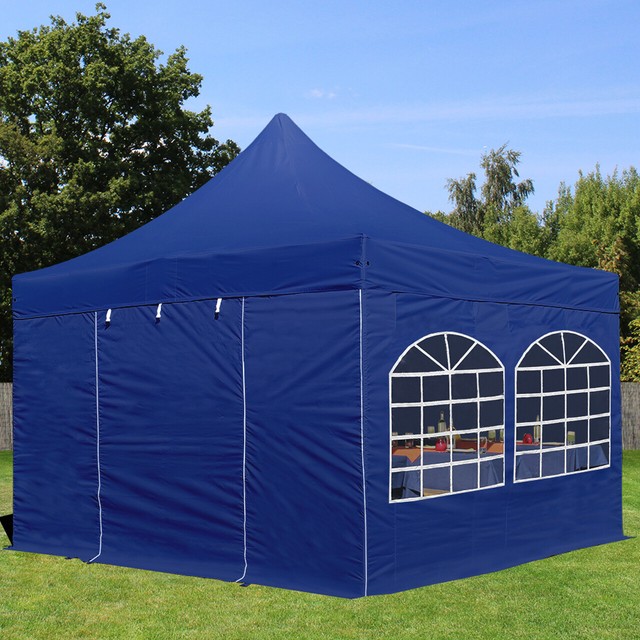 4x4 M Faltpavillon Partyzelt Pavillon Alu In Blau Mit Seitenteilen