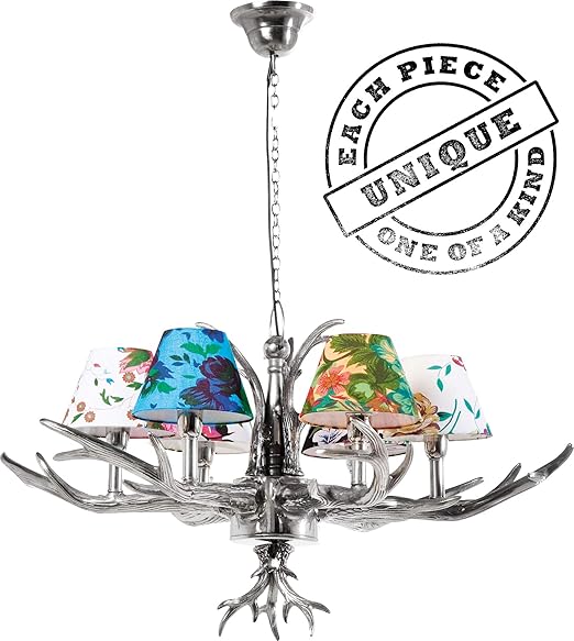 Kare Hangeleuchte Antler Flowers Silber Rustikale Lampe Mit